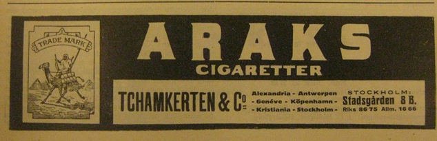 Storsäljande cigarrettmärke tillverkat av Tchamkerten & Co. Araks fanns i flera varianter bland annat Select och Dollar.