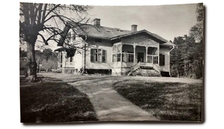 Husen i bakgrunden är frimurarbarnhemmet som uppfördes 1928 – 1930 efter det att Robert Ljunglöf år 1925 sålt fastigheten till Frimurarorden.