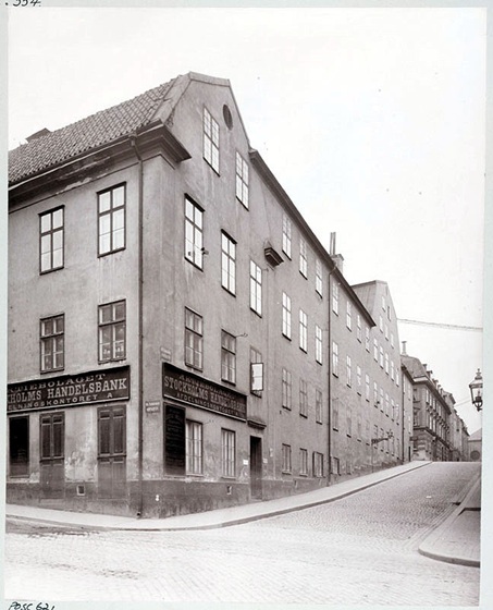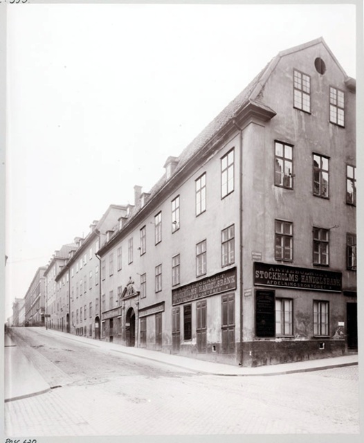 I ändringsritningen anges: Thetta huus skall efter thenna ritning blifva reparerat för Hr. Schiönborg et Almquist, hvilket är beläget vid Skeppsbroen i Stockholm Sub Numero 36″.