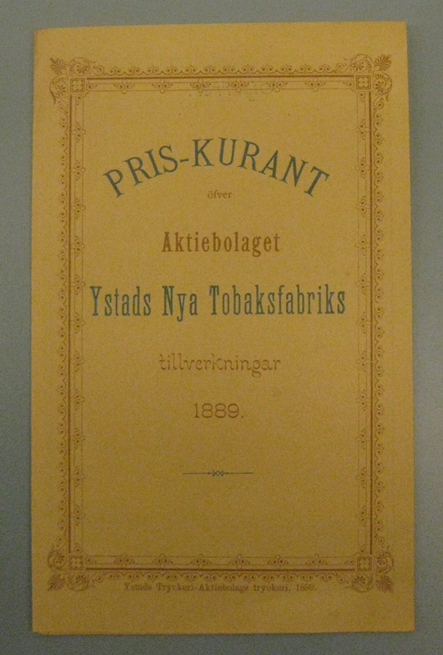 Bolagsordningen för AB. Ystads Nya Tobaksfabrik antogs den 27 april 1883. År 1888 utgjordes kapitalet av 55 000 kronor, och styrelsen bestod av konsuln, grosshandlaren Adolf Gottfrid Lindgren (1847-1920), kammarskrivaren Carl Gustaf Areskoug (1831-1894) och stadsnotarien Joh. Gust. Richard Wendt (f. 1827).